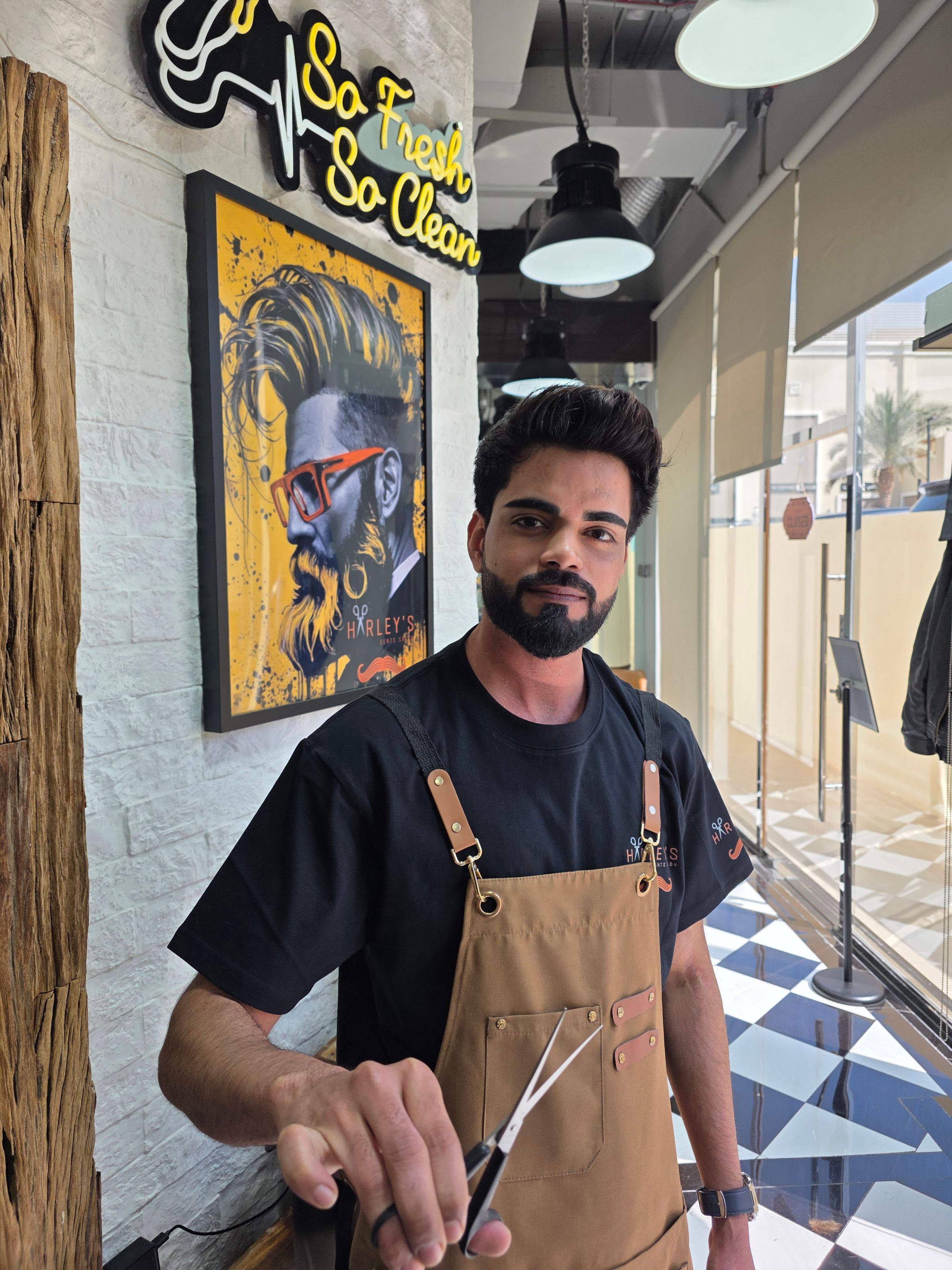 With a passion for modern grooming and an eye for classic detail, Arbaz has become a go-to stylist for the Springs community. Known for his calm demeanor and technical precision, Arbaz specializes in transforming grooming into a relaxing experience rather than just another chore. Expert in clean, sharp transitions and modern styles tailored to individual head shapes. Master of beard shaping, lining, and traditional hot towel shaves that leave clients feeling revitalized. Knowledgeable in facial treatments and scalp health, ensuring a premium "Harleys" experience.